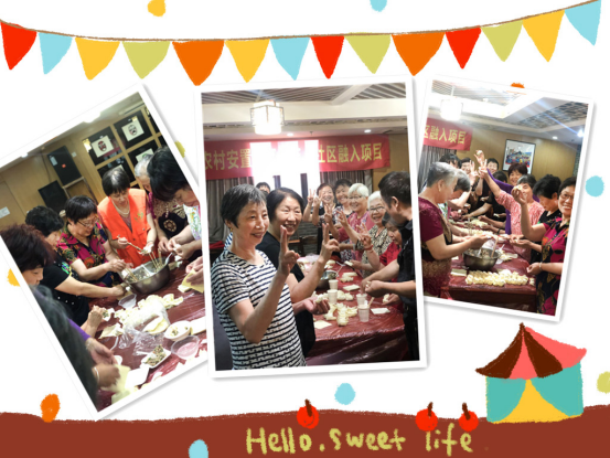我們的阿姨親切得問道:“好吃嗎,餡的味道怎么樣?”老人們都還來不及嚼完口中的餛飩,便連聲應(yīng)道:“好吃好吃,你們做得很好吃,謝謝你們!”